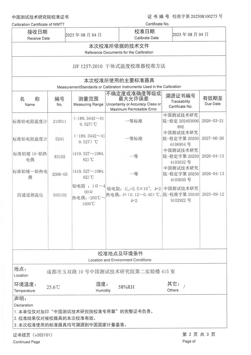 干體式溫度校準(zhǔn)器(40~650℃)校準(zhǔn)證書 2025-8-6 本文被閱讀 3288 次
