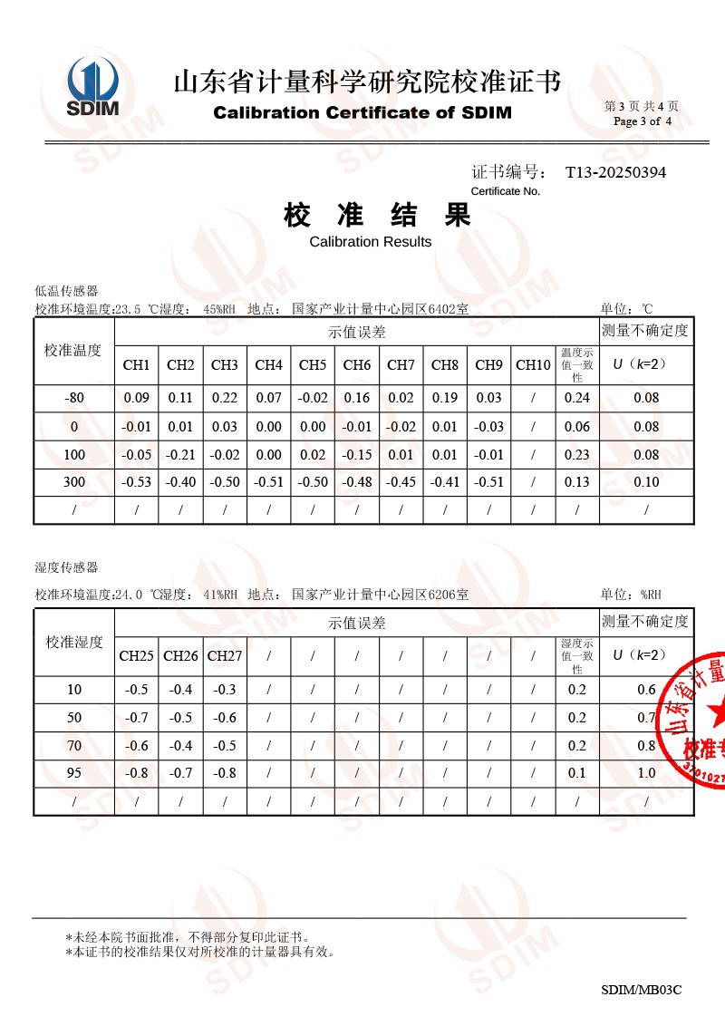 溫濕度巡檢儀校準(zhǔn)證書