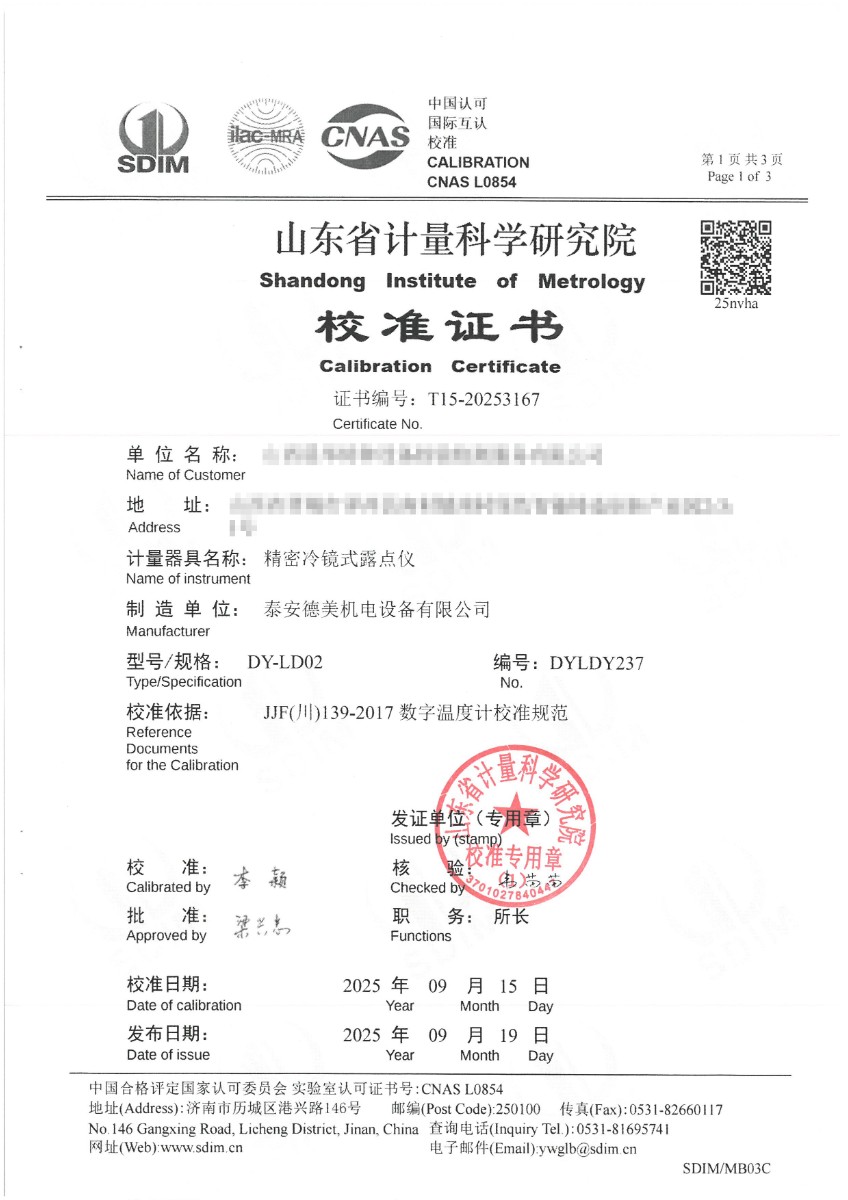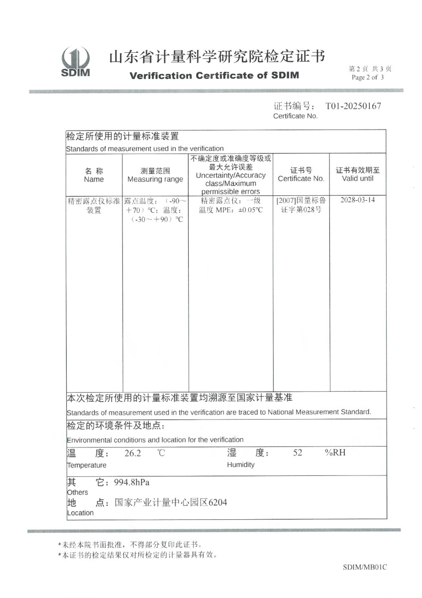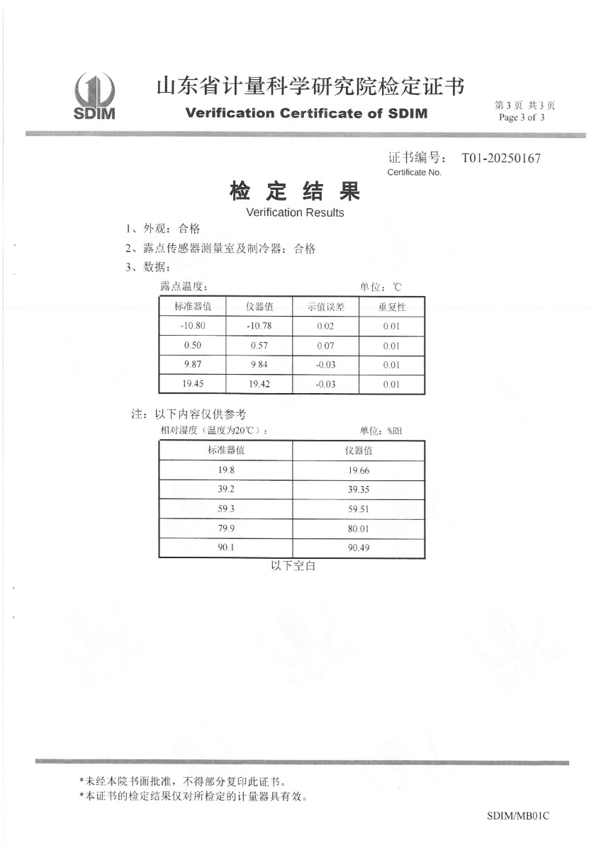 冷鏡式露點(diǎn)儀檢定、校準(zhǔn)證書