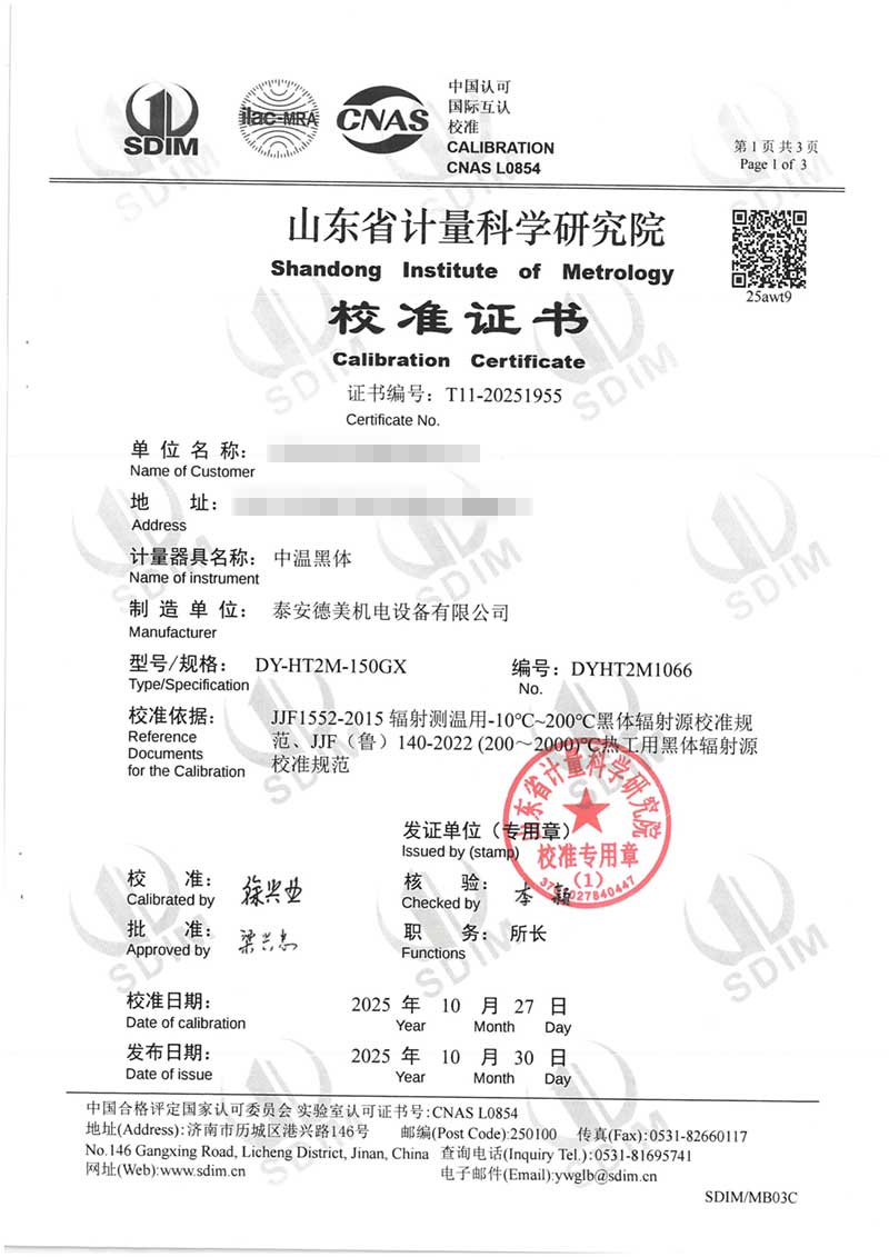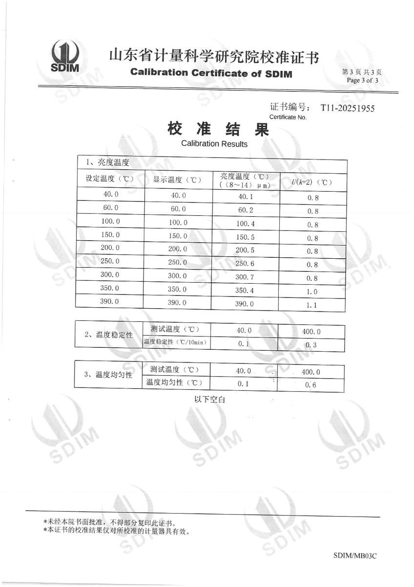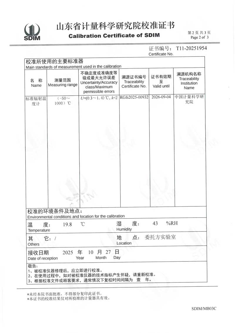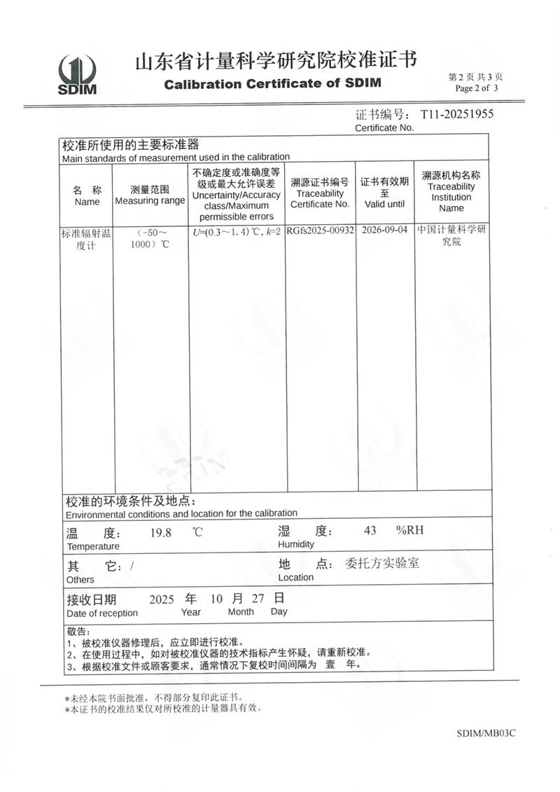 中溫黑體(室溫+5~400℃)校準(zhǔn)證書 2025-11-5 本文被閱讀 1476 次