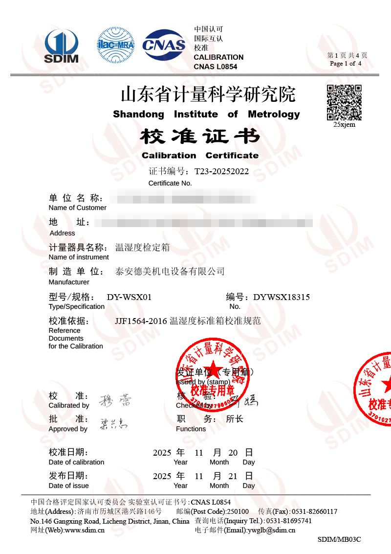 溫濕度檢定箱校準(zhǔn)證書 2025-11-25 本文被閱讀 1827 次