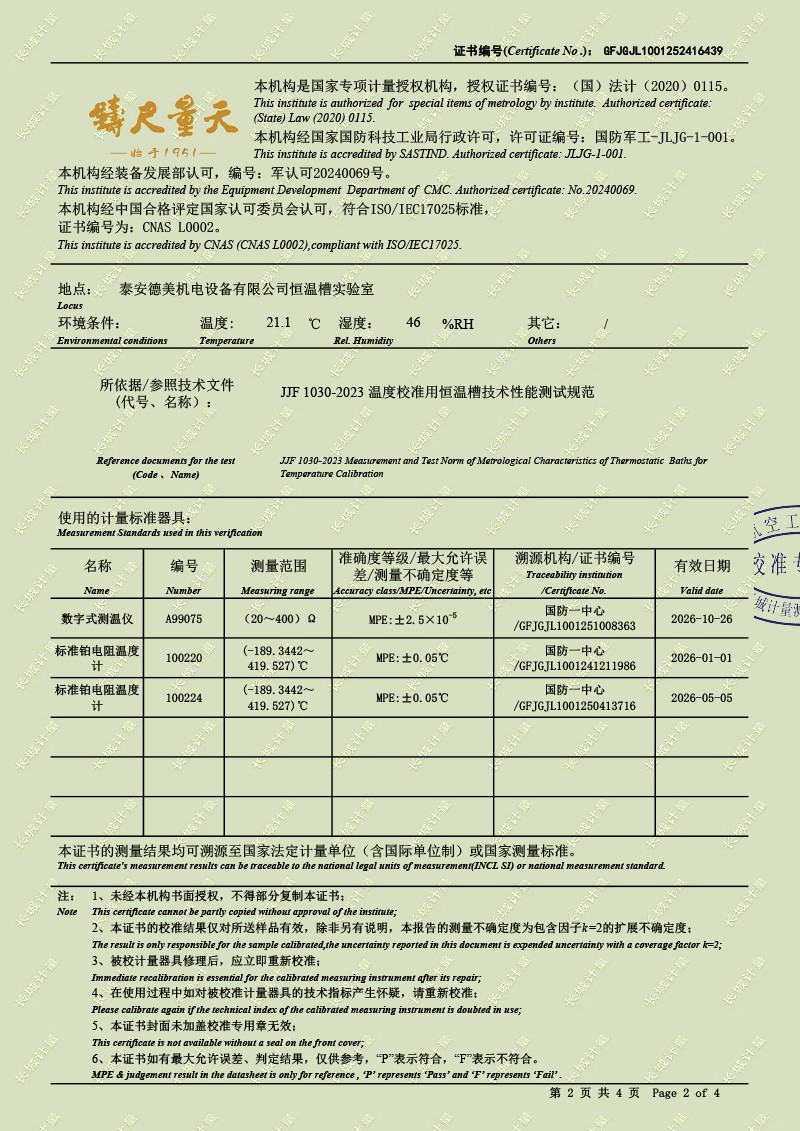 高精度恒溫油槽-校準證書 2025-12-19 本文被閱讀 1213 次