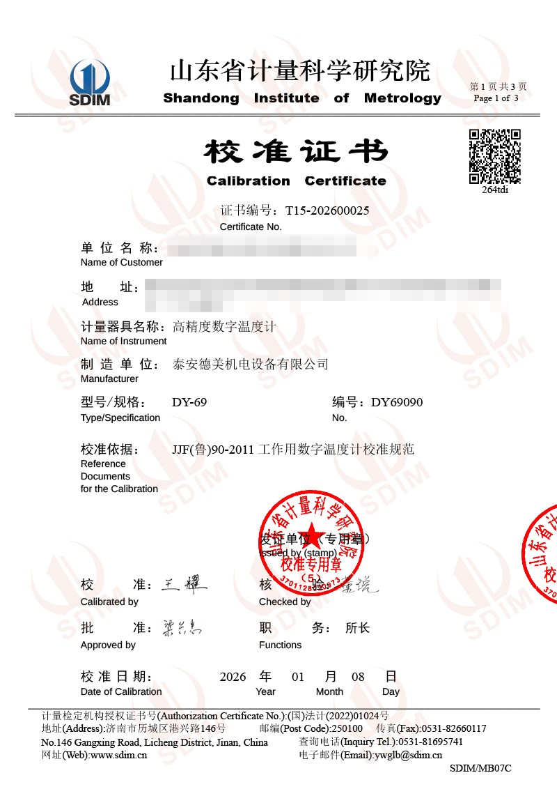高精度數(shù)字溫度計校準證書 2026-1-13 本文被閱讀 676 次