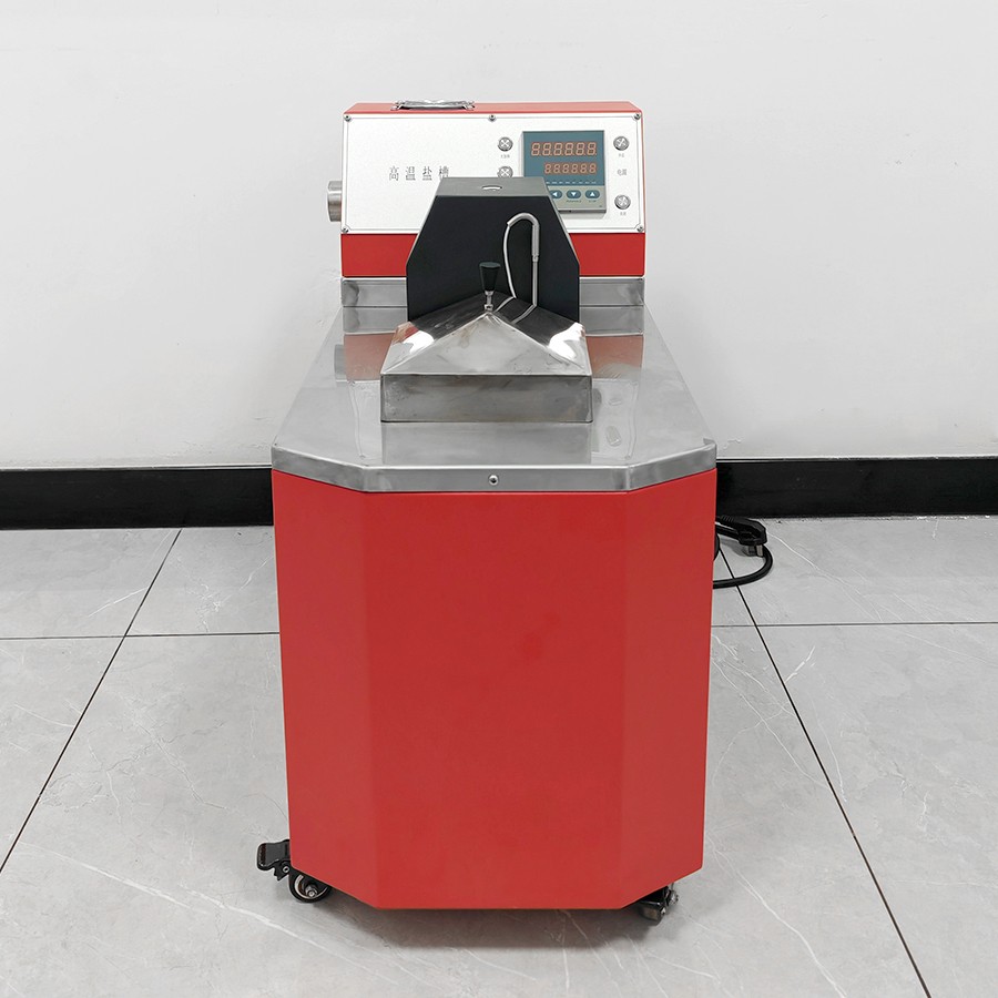 產(chǎn)品采用先進(jìn)的自動控制系統(tǒng),界面友好,操作方便,控制精度高。主要是由加熱系統(tǒng)、控溫系統(tǒng)、攪拌系統(tǒng)所組成。槽體分混合區(qū)與工作區(qū)。在混合區(qū)內(nèi)由加熱器產(chǎn)生的熱量使槽內(nèi)固態(tài)鹽(介質(zhì))升溫熔化成鹽液,當(dāng)鹽液溫度上升到接近設(shè)定溫度時(shí),控溫系統(tǒng)根據(jù)感溫器測得的溫度來控制加熱器工作,再經(jīng)過攪拌系統(tǒng)的強(qiáng)烈攪拌充分均勻后的鹽液(介質(zhì))送入少受外界干擾的工作區(qū)。從而得到一個(gè)溫度穩(wěn)定溫場均勻的液體空間。