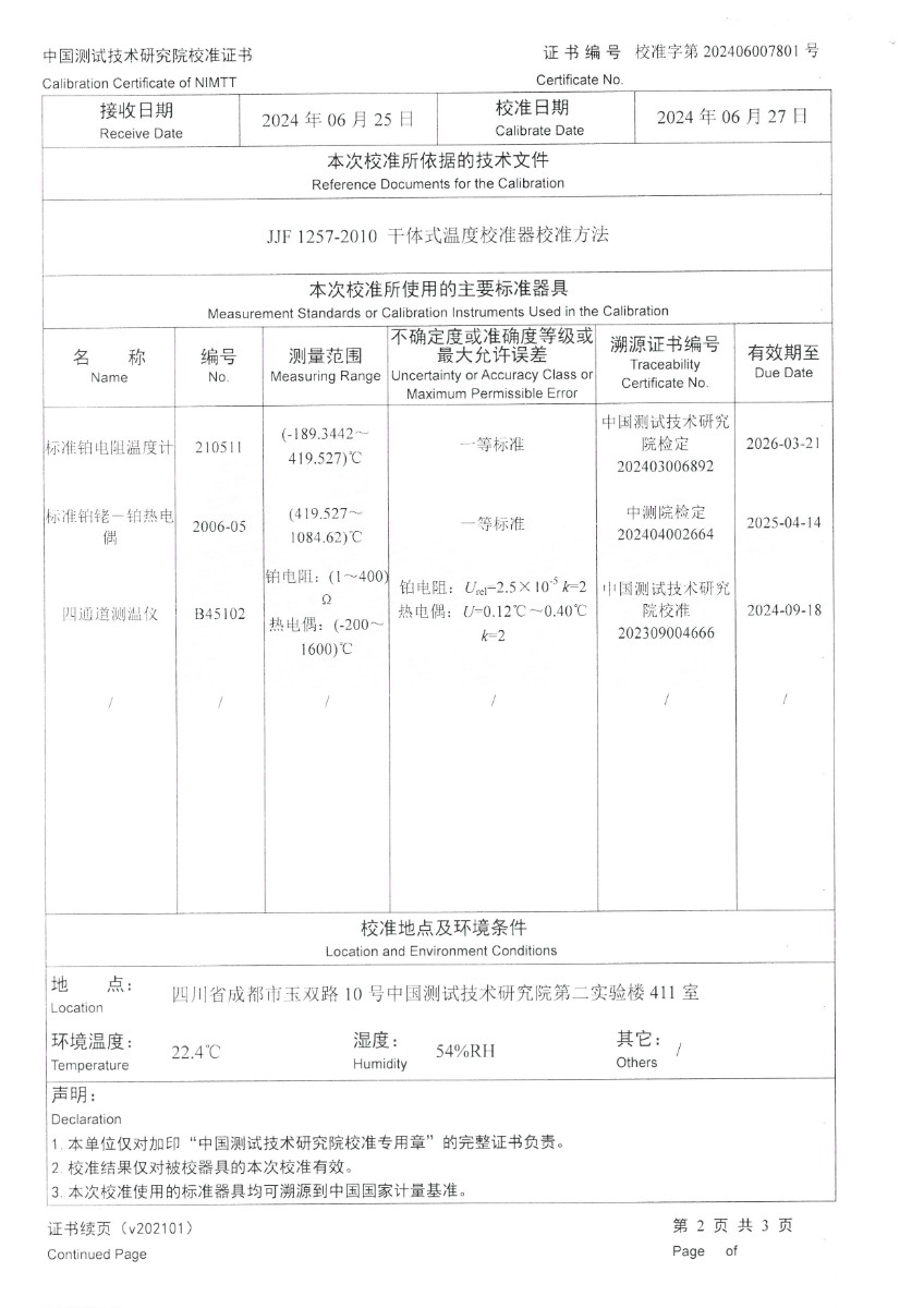 中溫干體爐(50~450℃)校準(zhǔn)證書 2024-7-1 本文被閱讀 6727 次