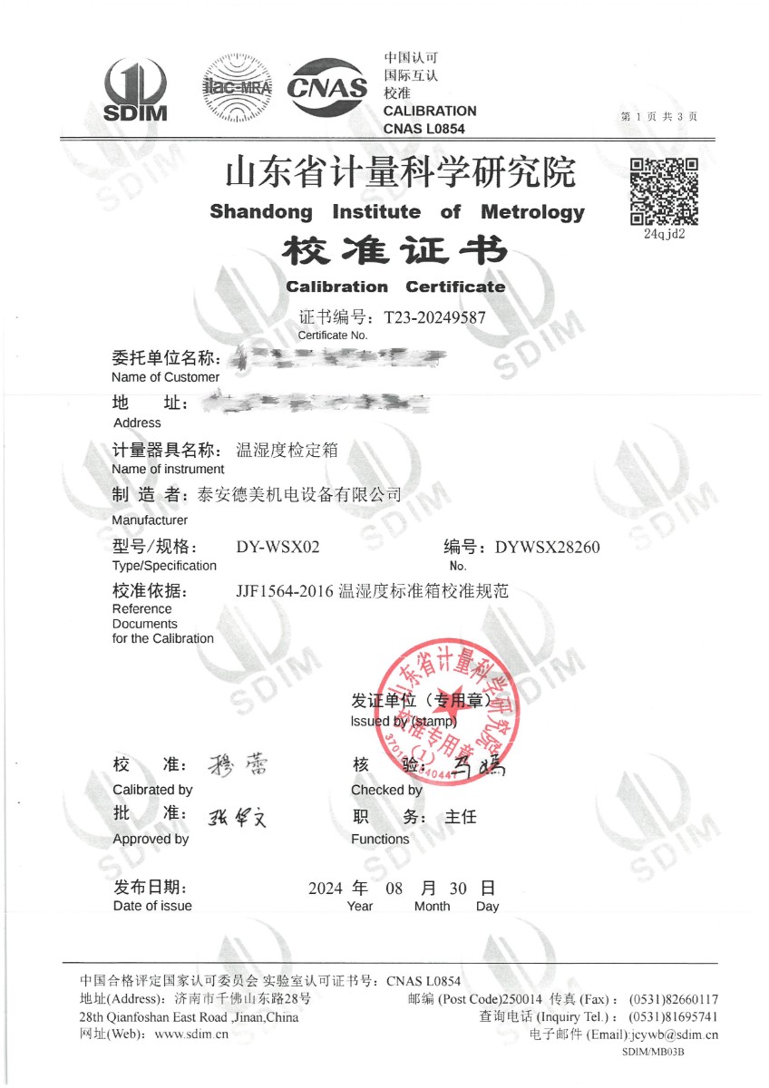 | 上一條:高精度恒溫槽(-80~100℃)校準(zhǔn)證書 | 下一條:廉金屬熱電偶檢定爐-校準(zhǔn)證書 |