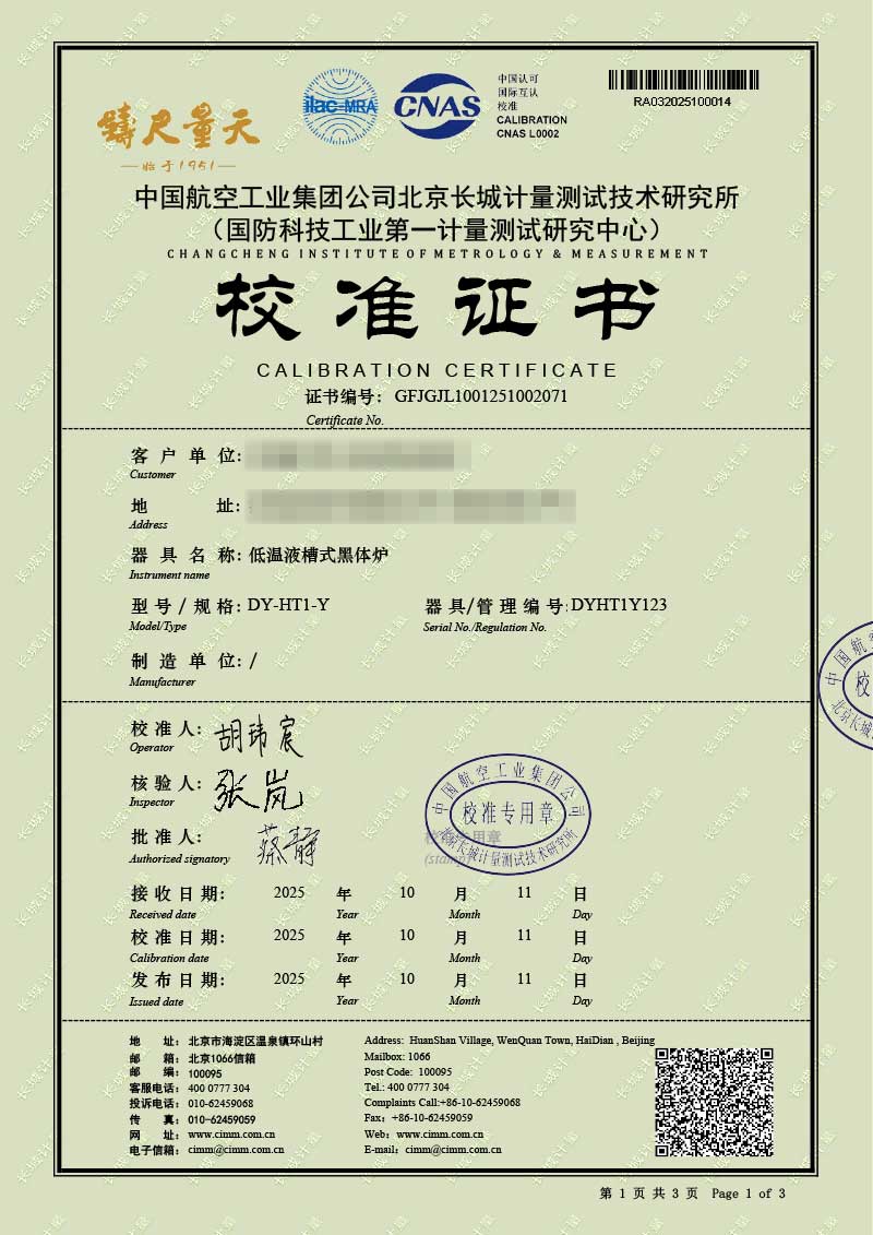 低溫液槽式黑體爐(-40-100℃)校準(zhǔn)證書 2025-10-30 本文被閱讀 1636 次