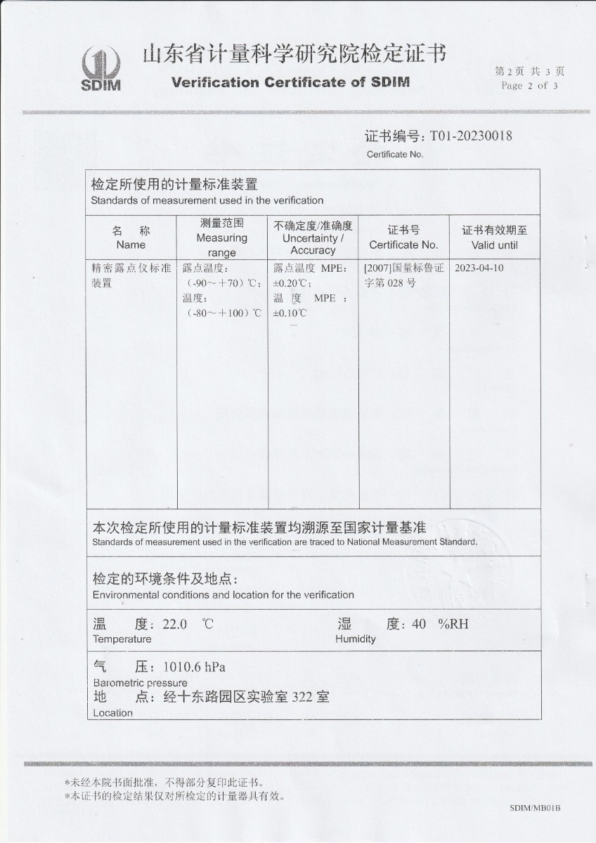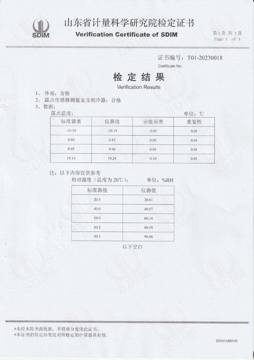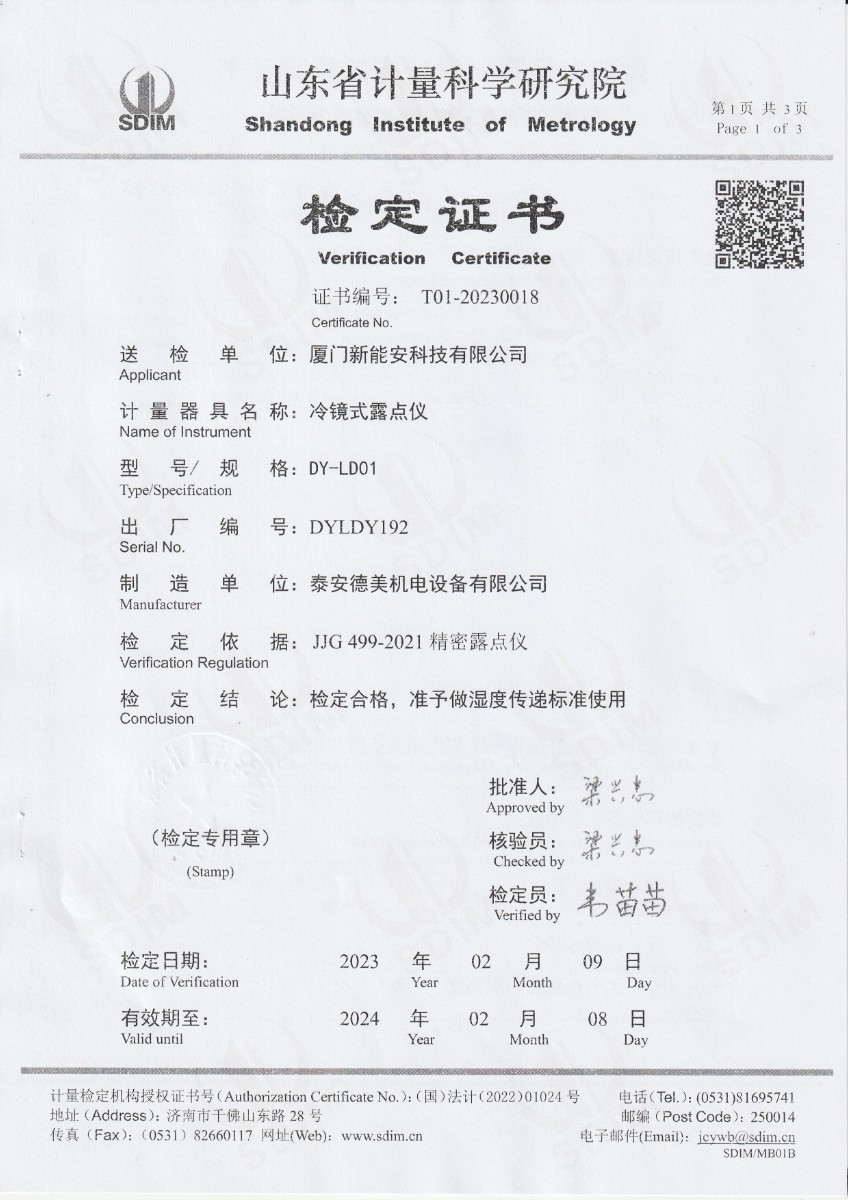 廈門新能安科技有限公司 冷鏡式露點儀 檢定證書 2023-2-25 本文被閱讀 10775 次
