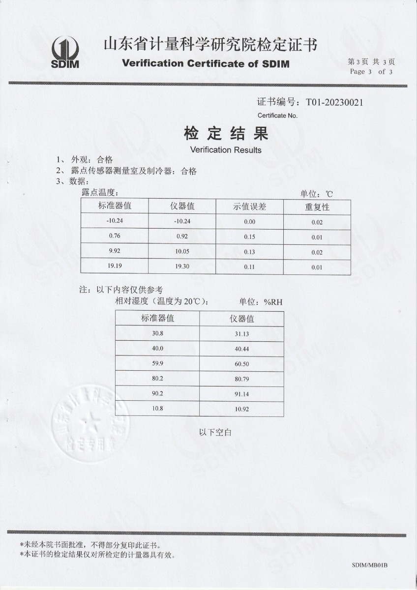 晶科能源(海寧)有限公司 冷鏡式露點(diǎn)儀 檢定證書 2023-2-25 本文被閱讀 14502 次