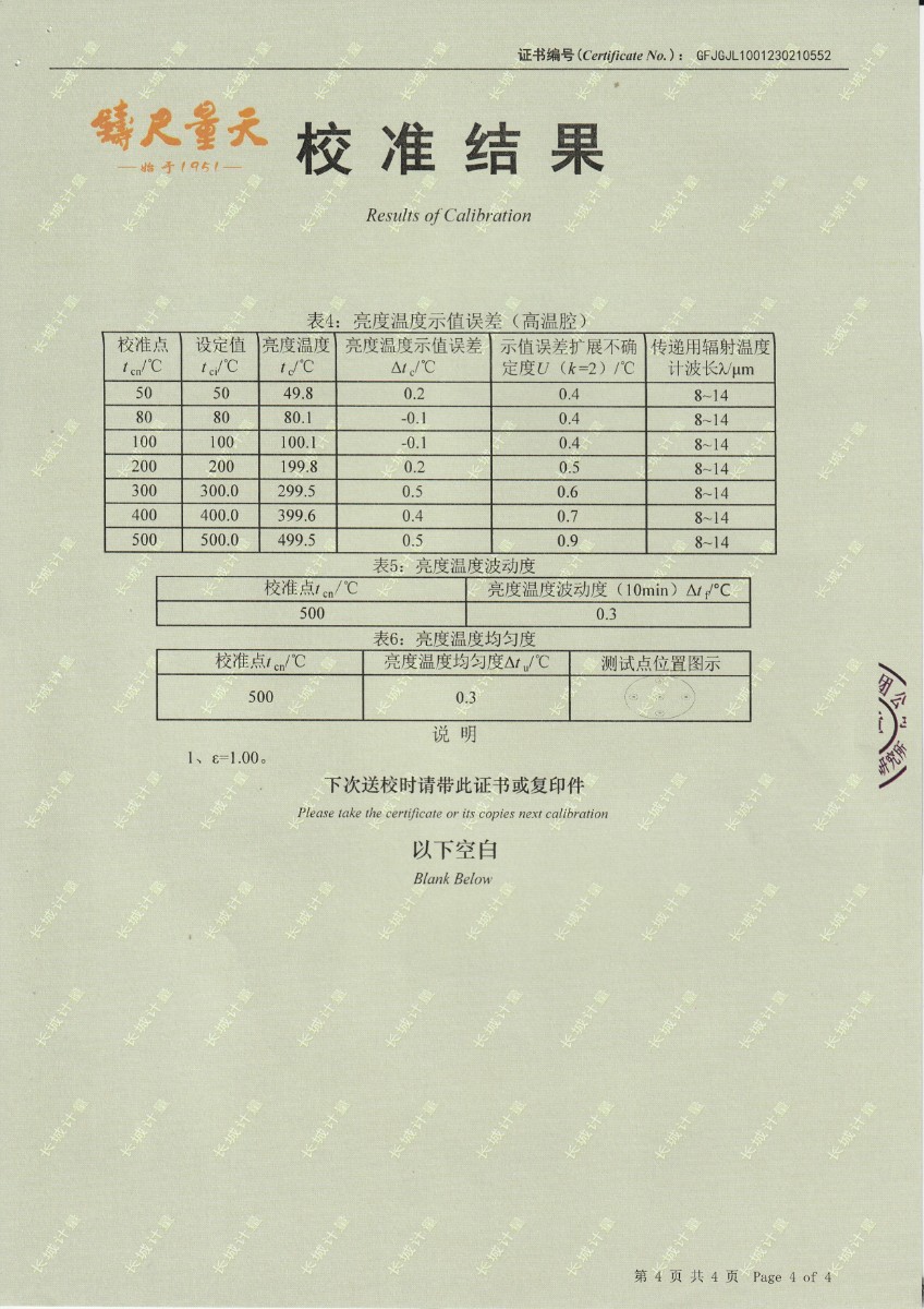 | 上一條:煙臺信泰檢測技術(shù)服務(wù)有限公司 黑體爐 校準(zhǔn)證書 | 下一條:DY-HT2M-C高溫面源黑體爐(100mm) |