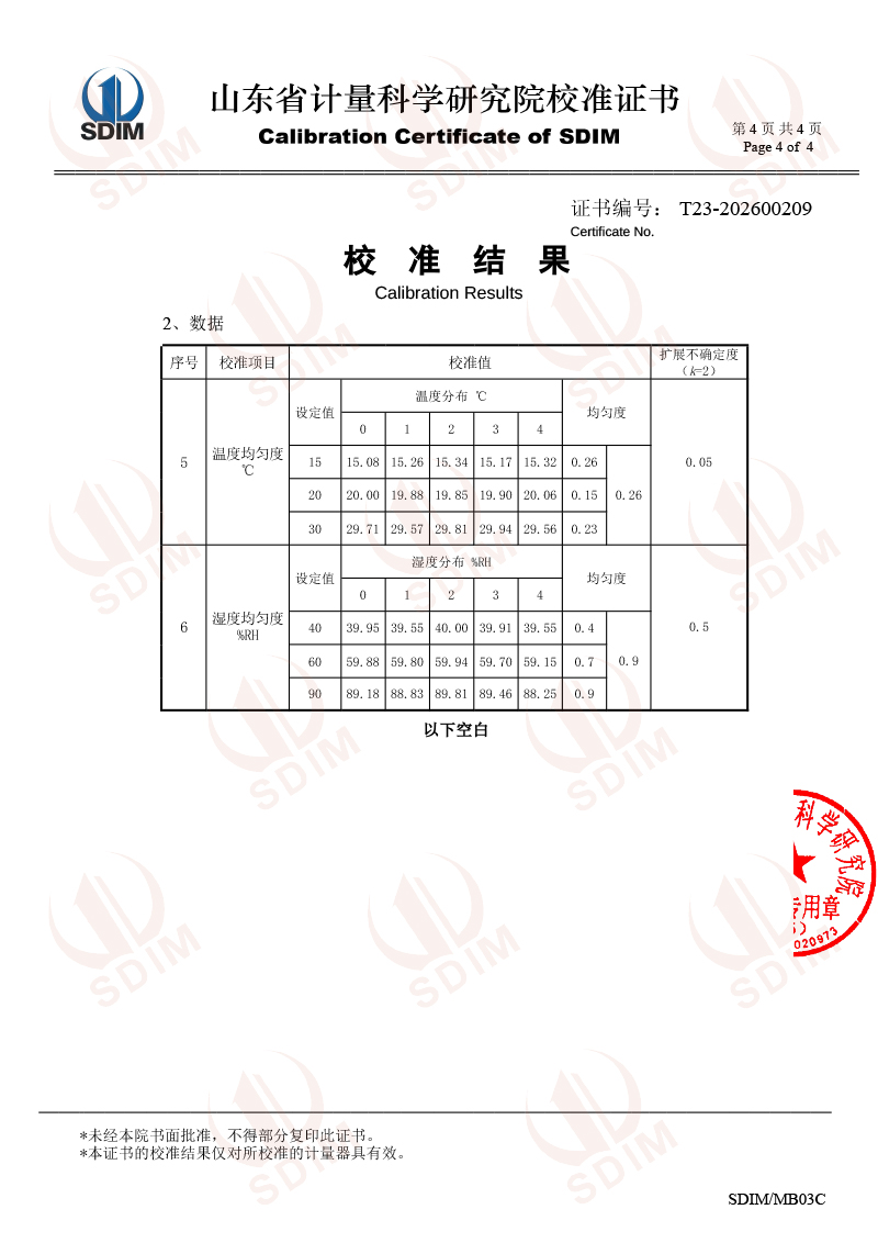 便攜式溫濕度檢定箱-校準證書